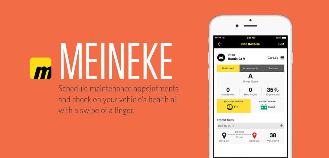 We’ve recently teamed up with Meineke Car Care to launch their own connected car product, Revvy. The Meineke app lets you know what your car needs with just a push of a button. Schedule appointments, view the entire vehicle repair history of your car, and check your Meineke Rewards points all within the app. To learn more about our partnership with Meineke, visit getrevvy.com.